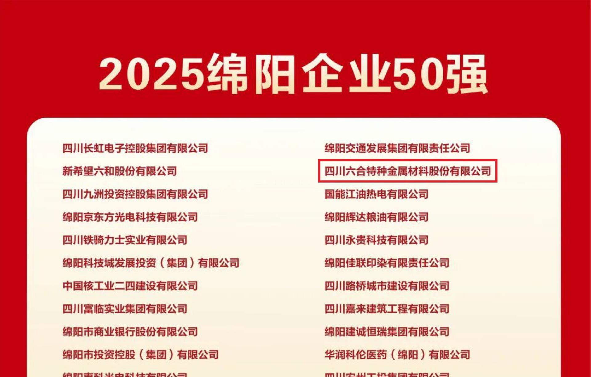近日,国家级专精特新“小巨人” 企业名单正式公布,四川六合特种金属材料股份有限公司(简称 “六合特材”)凭借在特种金属材料领域的技术突破与行业引领力成功入选,标志着企业在高端特种金属材料赛道的专业化深耕、精细化制造、特色化突破与创新化发展迈上新台阶,正式跻身国家级优质中小企业行列。